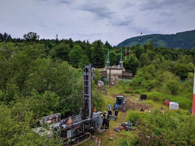It has been an interesting and successful start to our field program. There is small island at the existing weir between the concrete weir and the control gates. With little geologic or geotechnical information available, we wanted to get out there and drill a couple of boreholes.